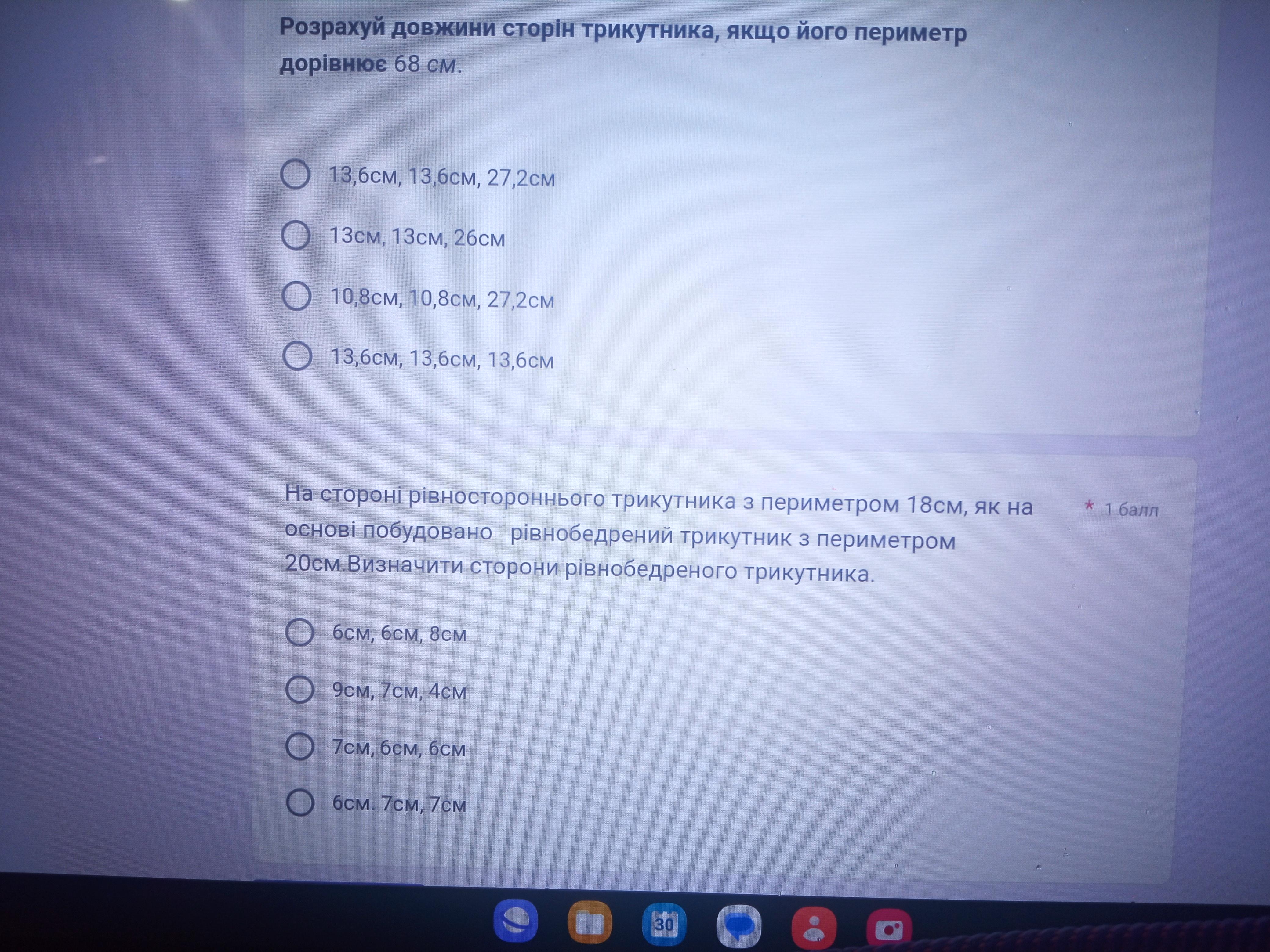 - 13,6+13,6=27,2 см сума двох сторін. 27,2=27,2 трикутник не існує
