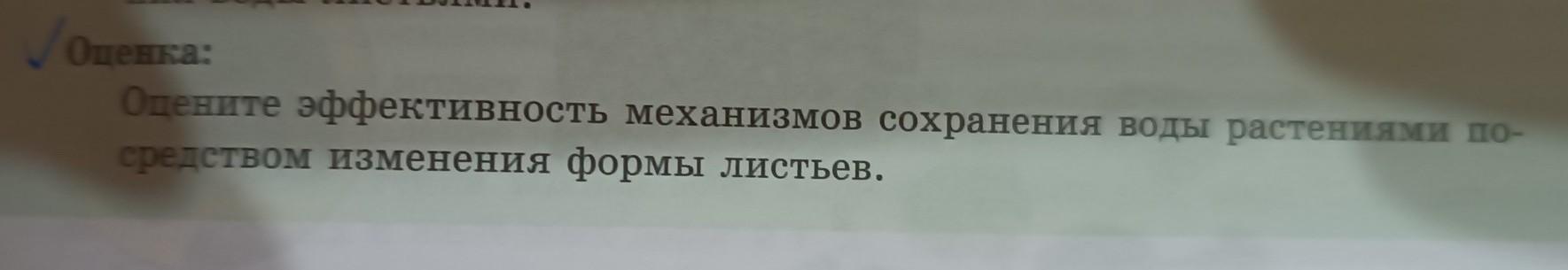 Оценка: Оцените эффективность механизмов сохранения воды растениями по средством изменения формы листьев. види большой таблицы