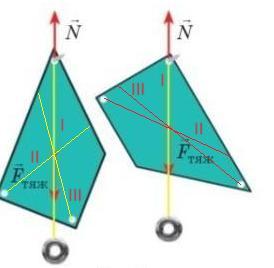 Щоб переконатися, що визначена точка є ц.м. треба взяти вирізану на картоні фігуру, підвісити за точку ц.м. на нитці. Якщо площа фігури займає горизонтальне положення, то ц.м. визначен правильно.