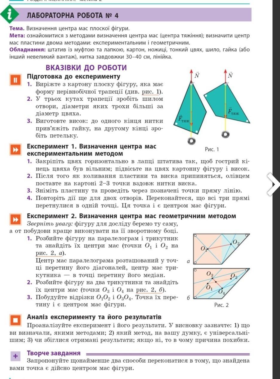 1) центр мас (ц.м.) експериментальним методом за допомогою отвісу на нитці і