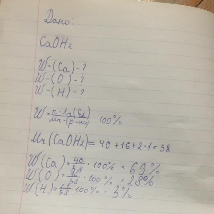 Са(ОН)2 w(E)= риска дробу n*Ar(E) Mr *100%