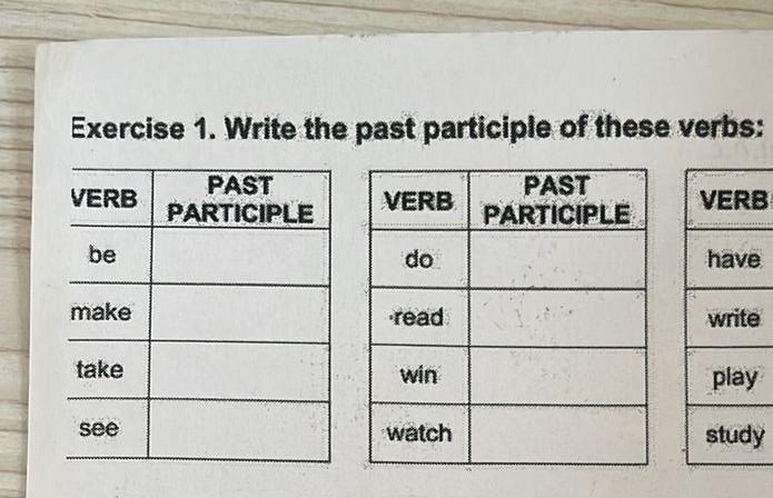 be-been make-made take-taken see-seen do-done read-read have-hwrite-written play-played study-studied