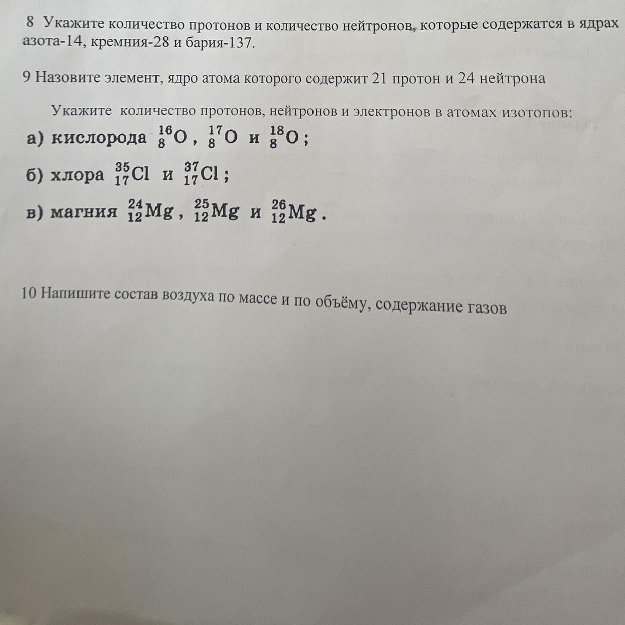 ПОМОГИТЕ ПЖ ДАМ 20 БАЛЛОВ 8 Укажите количество протонов и количество нейтронов, которые содержатся в ядрах