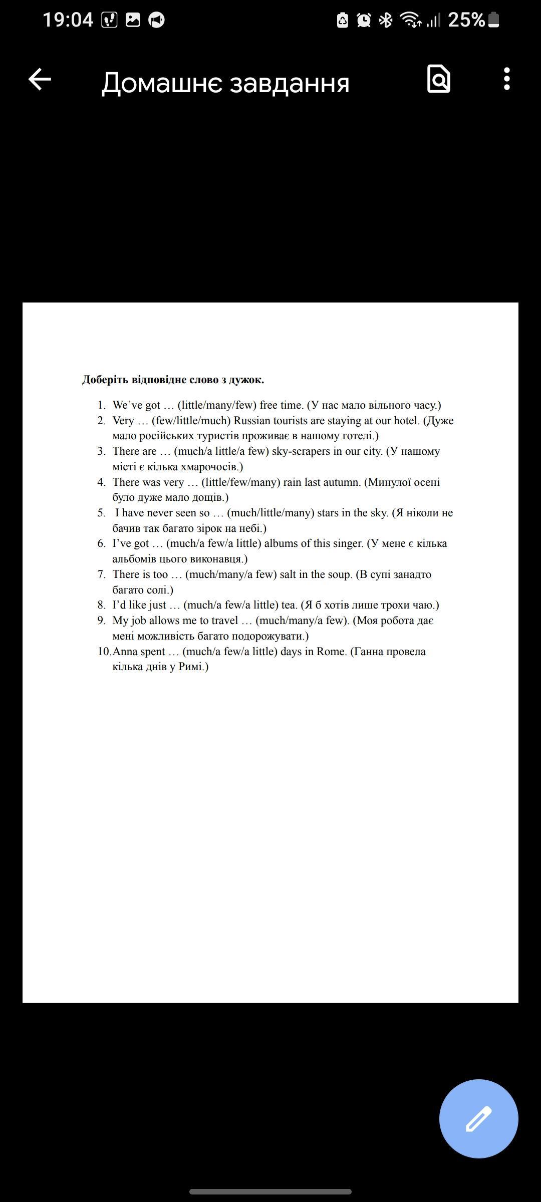 10. Anna spent **a few** days in Rome. (Ганна провела кілька днів у Римі.)