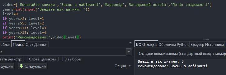 Напишіть програму яка б за введеним віком рекомендувала відповідний відеоконтент: