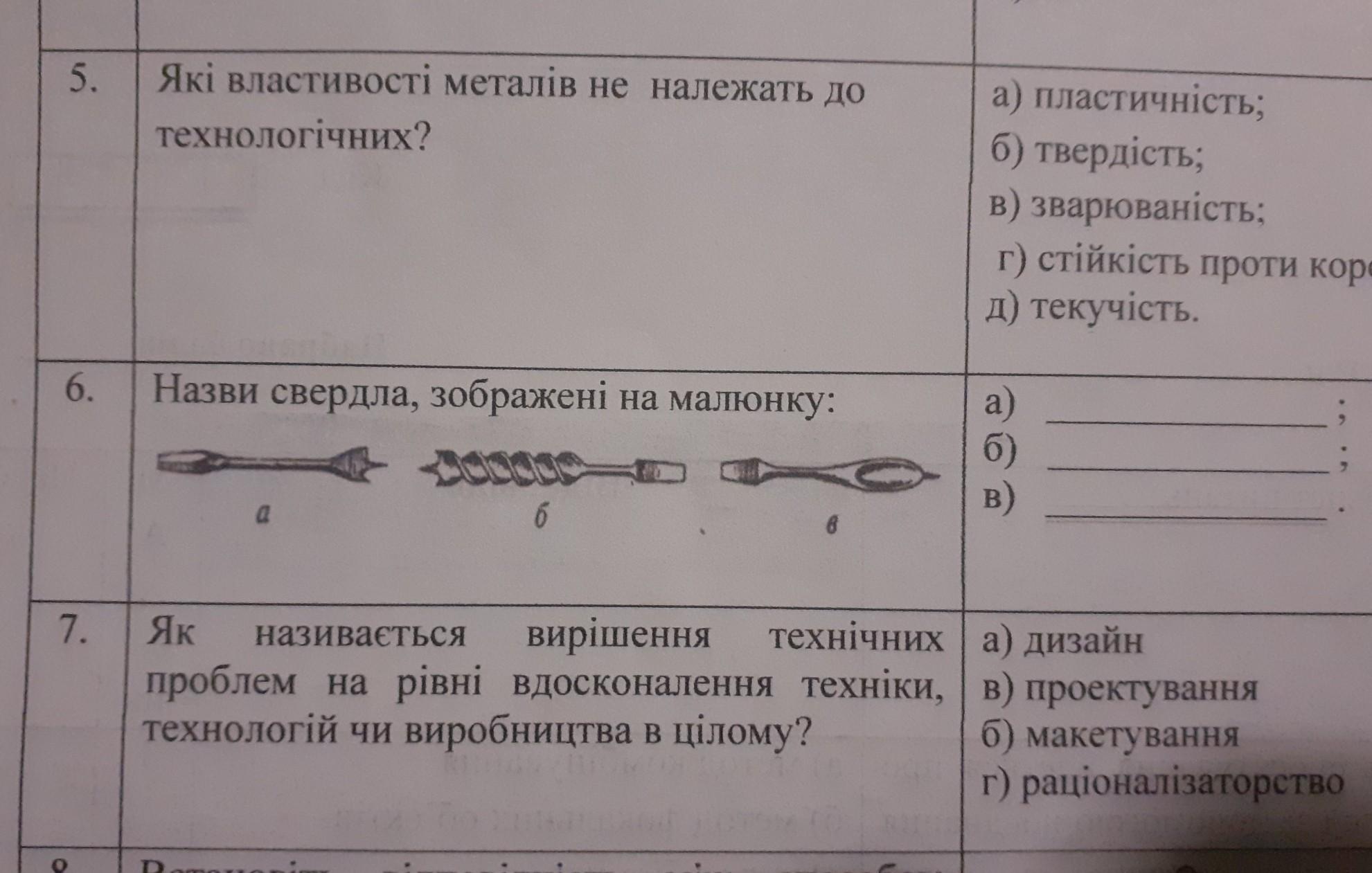 5. Назви свердла, зображенi на малюнку: 6 Як називається вирішення технiчних - а) дизайн проблем на рівні вдосконалення техніки, технологій чи виробництва в цілому, Встановіть відповідність між способом Фальцевого з'єднання та його зображенням DI3 3XFY' na n г) стійкість проти ко д) текучість. anue: в) проектування б) макетування г) раціоналізаторст