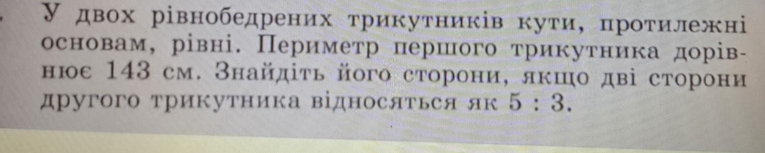 Другий трикутник є рівнобедреним, і його сторони відносяться як 5:3, отже, можна записати: