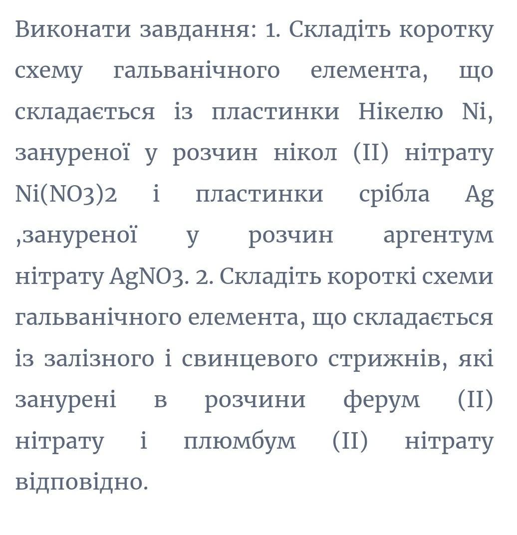 1. Гальванічний елемент з пластинкою нікелю та пластинкою срібла: