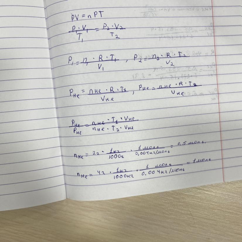 3. Көлемі 4 л ыдыста сутегі мен гелий бар. Газдарды идеалды деп алып, 20 °С температурадағы ыдыстағы газдардың қысымын табыныз, егер олардың массалары сәйкесінше 2 г және 4 г болса. Сутектің молярлык массасы 0,002 кг/моль. Гелийдiн молярлык массасы 0,004 кг/моль. R = 8,31 Дж/моль К.