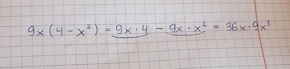 (Пояснення: потрібно одночлен 9x помножити на кожен одночлен у дужках. Це розподільний закон множення)