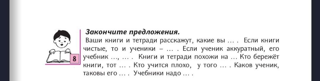 1. Ваши книги и тетради расскажут , какие вы . 2. Если книги чистые , то и ученики - хорошие. 3. Если ученик аккуратный, то учебник - красивый,и находится в бережном виде. 4 Книги и тетради похожи на хозяина. 5. Кто бережёт книги, тот учится хорошо 6. Кто учится плохо, у того и книги такие. 7. Каков ученик, таковы его тетради.8. Учебники надо беречь.