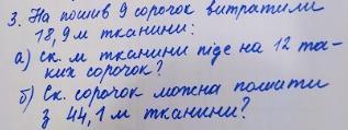 44,1÷2,1=21 сорочку можна пошити з 44,1 м тканини.