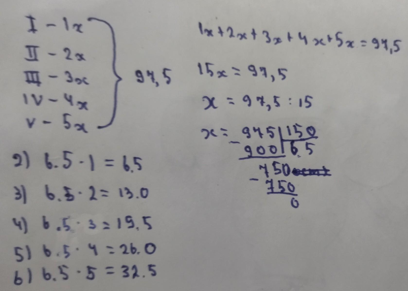 Поділіть число 97, 5 у відношенні 1:2:3:4:5 СРОЧНОО