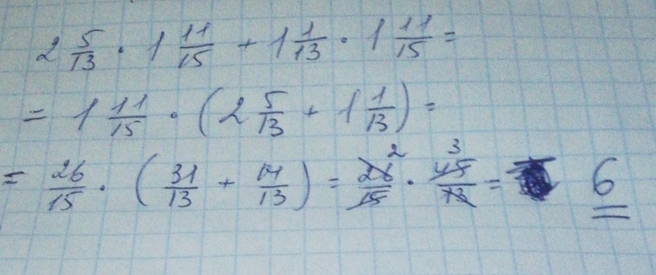 2 5/13 * 1 11/15 + 1 1/13 * 1 11/15 =