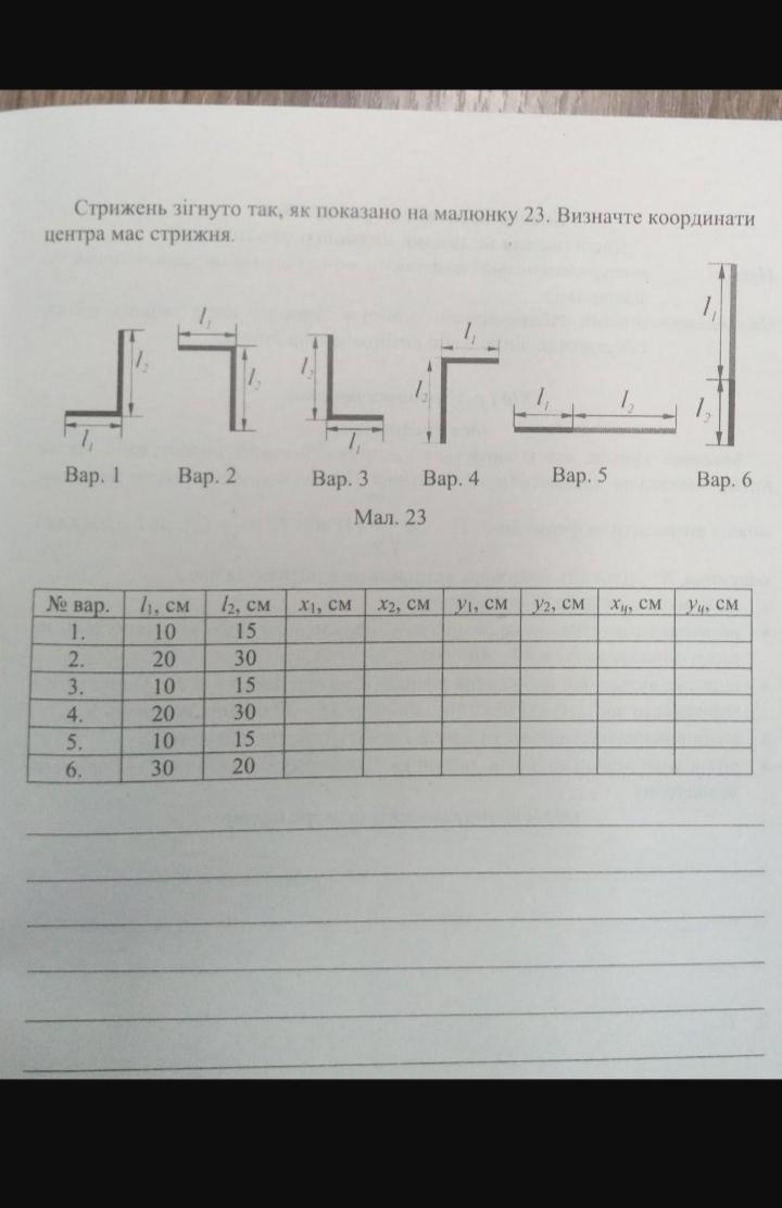 Стрижень зігнуто так, як показано на малюнку 23. Визначте координати 2 і 4 варіант