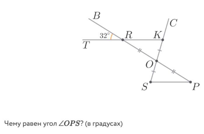 ∠KRO=∠OPS=32° (внутренние накрест лежащие углы)