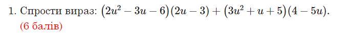 (2u^2 - 3u - 6)(6u - 3) + (3^2 + u + 5)(4 - 5u)