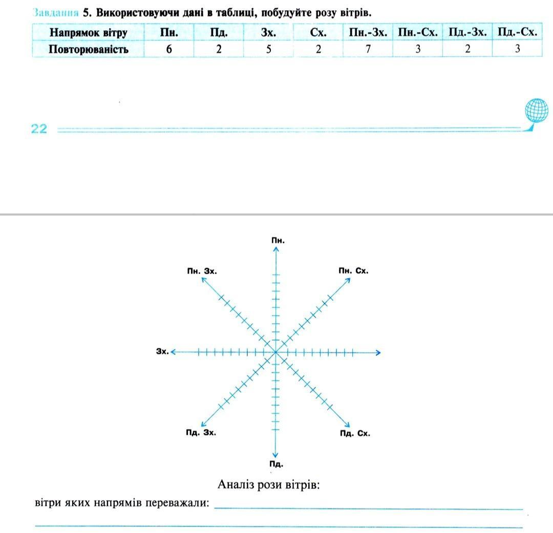 Використовуючи даиі в таблиці, побудуйте розу вітрів.
