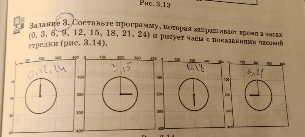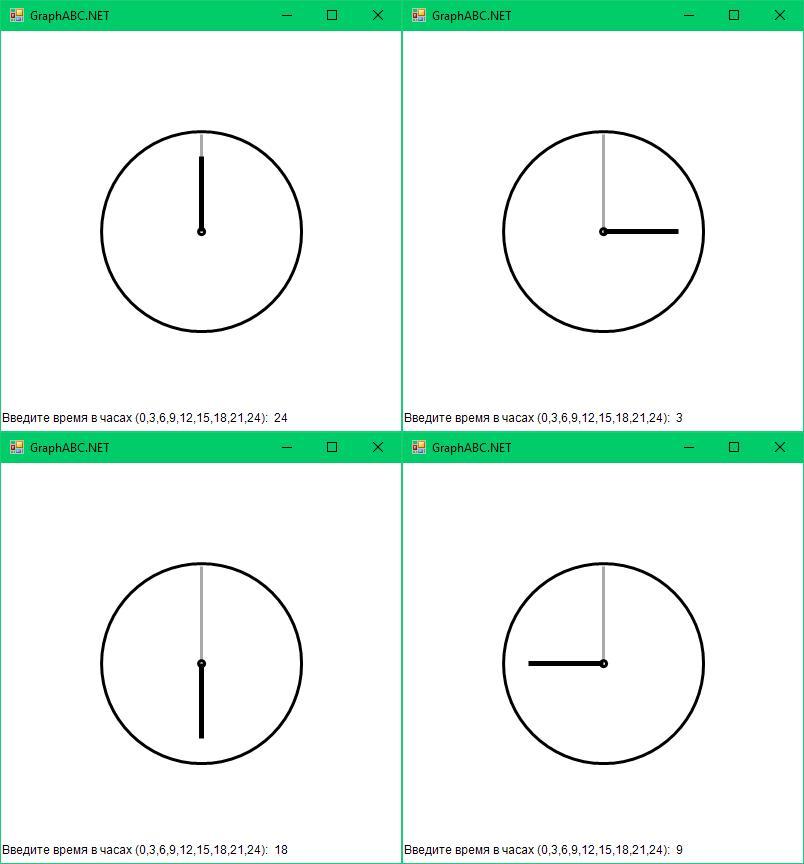 составьте программу, которая запрашивает время в часах(0,3,6,9,12,15,18,21,24) и рисует
