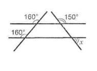 Верхній кут і х кут - це суміжні кути, сума цих кутів - 180°. Маємо рівняння:
