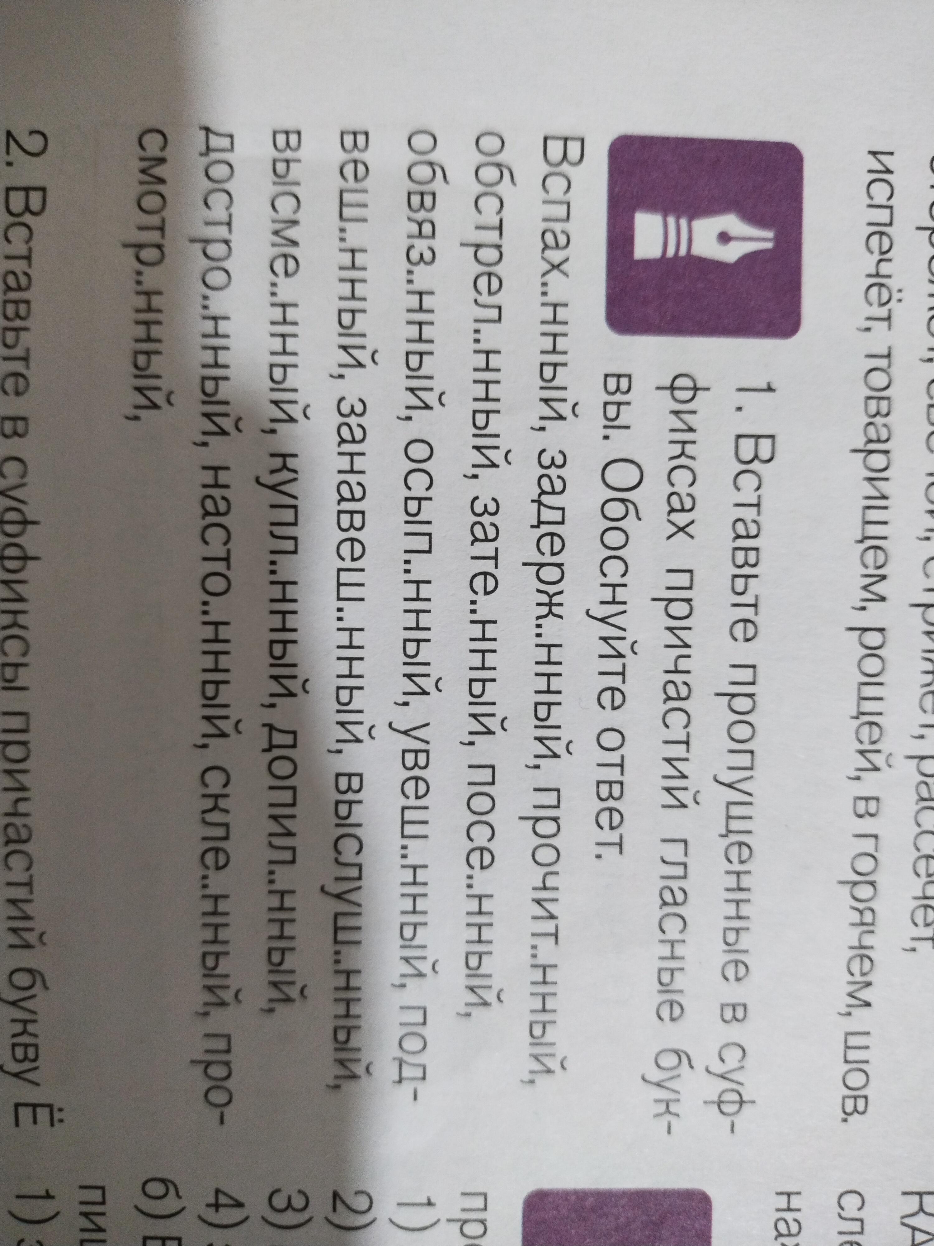 Вставьте пропущенные в суффиксах причастии гласные буквы.