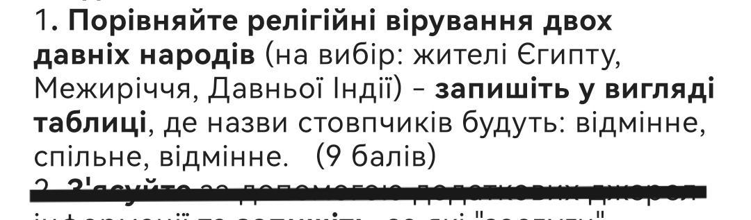 | Єгиптяни вірили в загробне життя, вавилоняни - ні | Поклонялися богам неба, землі, води | Єгипетські боги зображувалися у вигляді тварин або людей з головами тварин, вавилонські боги мали людську подобу |