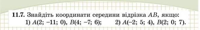 1) Хс=(2+4)/2=3; Ус=(-11-7)/2=-9; Zc=(0+6)/2=3