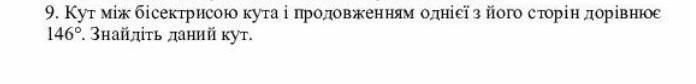 Шуканий кут складає з продовженням однієї з сторін розгорнутий кут , що дорівнює 180 градусів. Нехай кут,що дорівнює половині шуканого кута,дорівнює Х.Тоді