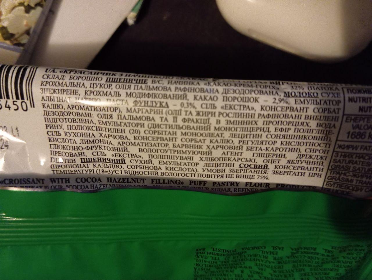 в складі не було знайдено нічого підозрілого, але сама начинка(лісовий горіх) може викликати алегрію. Також у самій булочці дуже багато масел, із-за цього їжа не дуже корисною. У складі також є соя, що може негативно сказитись на перетравлюванні йоду в огранізмі.
