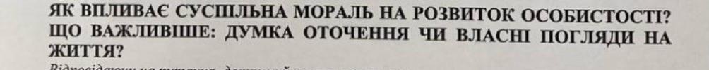 Зрештою, важливість суспільної моралі та власних поглядів на життя взаємопов'язані і залежать від контексту. Баланс між впливом суспільства і самовизначенням допомагає створити гармонійну особистість, яка не тільки враховує соціальні очікування, але й залишає місце для індивідуальності та творчості.