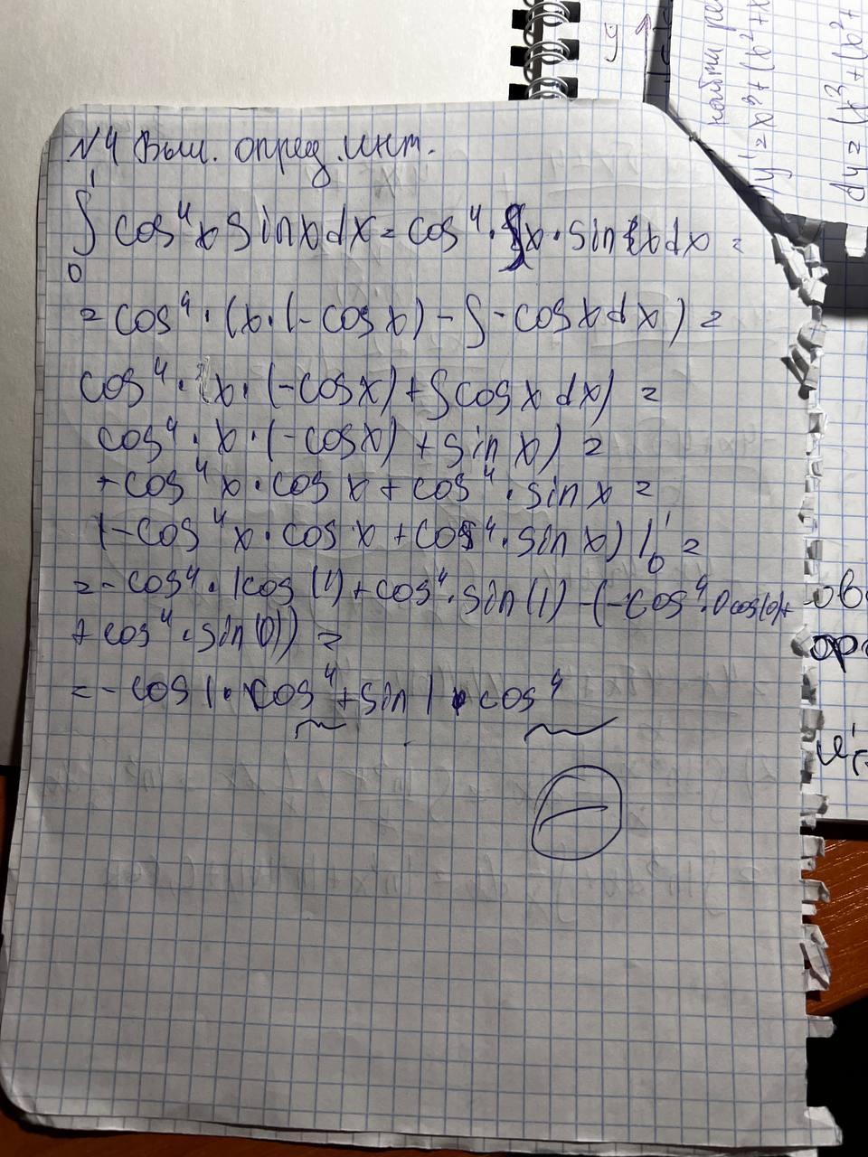 =-сos^5(1)/5-(-cos^5(0)/5)=cos^5(0)/5-cos^5(1)/5=1/5-cos^5(1)/5