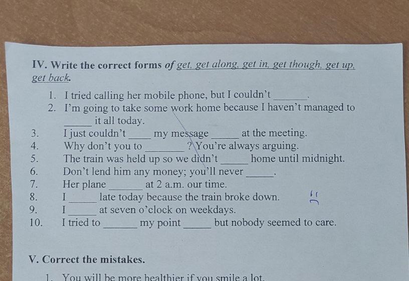 1 get through, 2 get 3 get in, 4 get along, 5 get, 6 get back, 7 gets, 8 got, 9 get up, 10 get in