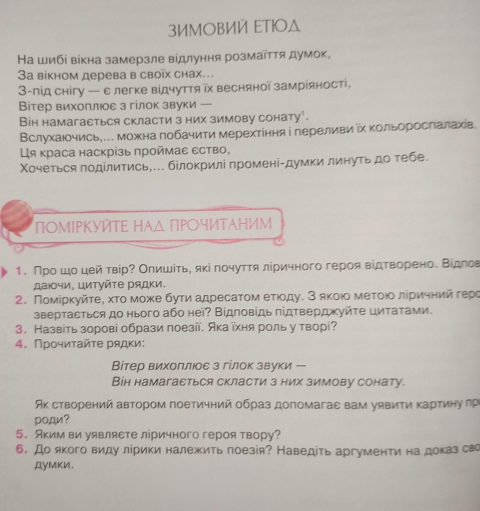 2. Адресатом етюду може бути сам ліричний герой чи спостеоагач за цим. Ліричний герой звертається до нього/неї, щоб поспілкуватись, виразити свої почуття на рахунок зими.