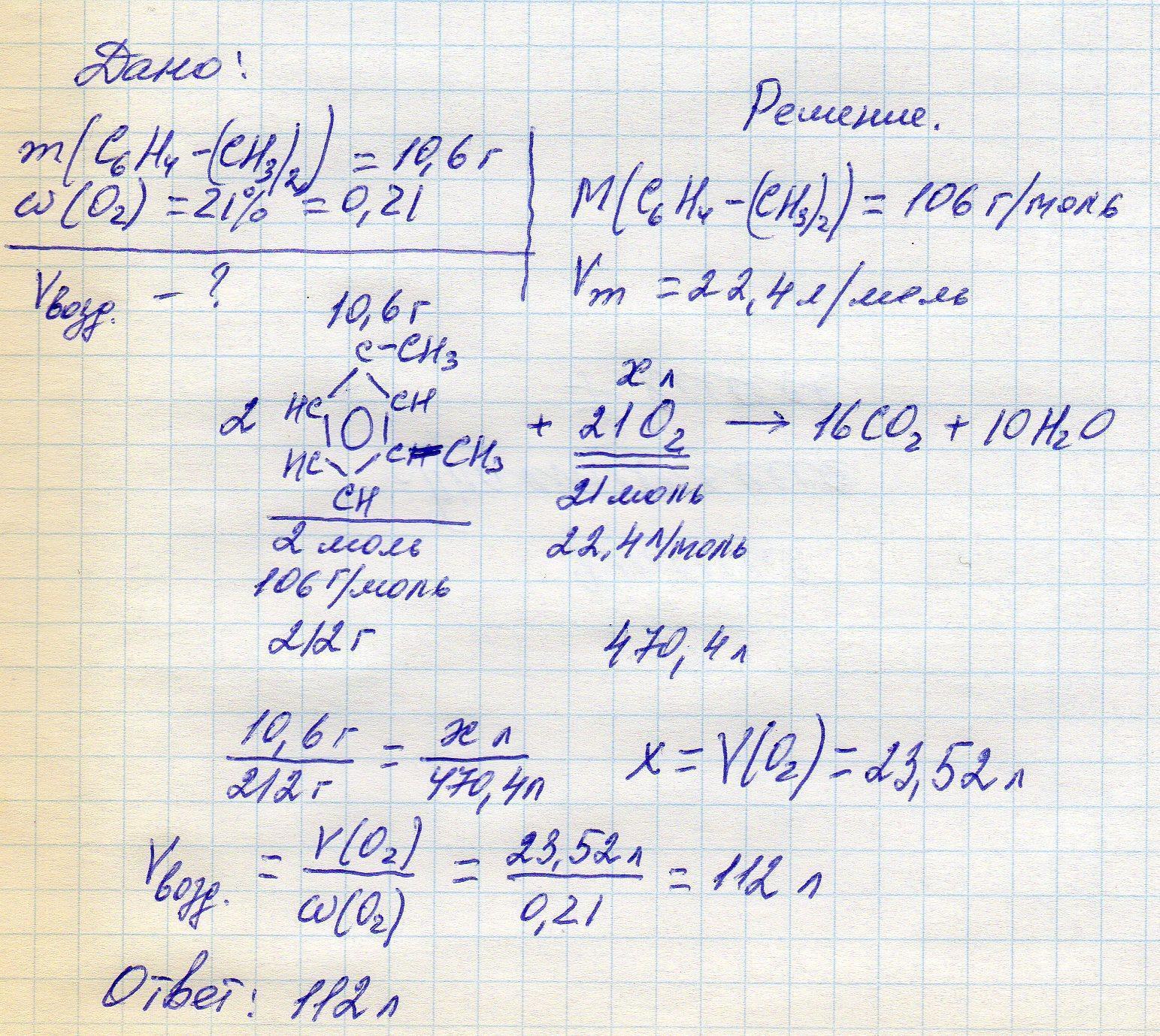 . Рассчитайте объем газообразных продуктов сгорания и объем воздуха, необходимого для сгорания 150г бензола С6Н6 при температуре 50°С и давлении 750 мм рт.ст.. В состав продуктов сгорания входит газообразная