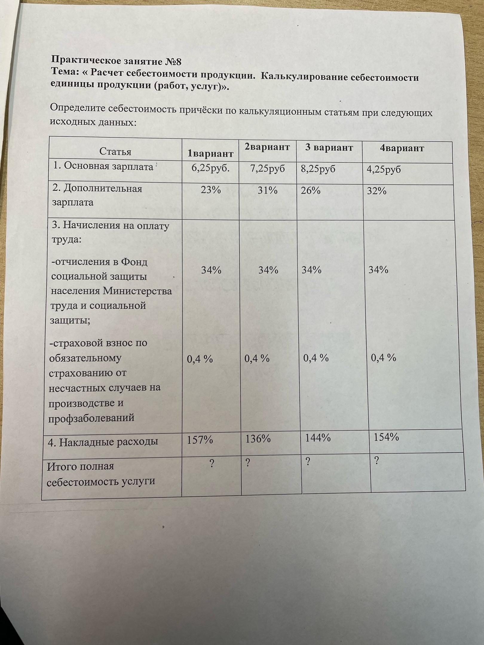 ДАЮ 100 БАЛЛОВ!!!!!!!!! Расчет себестоимости продукции. Калькулирование себестоимости единицы продукции (работ, услуг) все 4 варианта, очень срочно ДАЮ 100 БАЛЛОВ!!!!!!!!!!