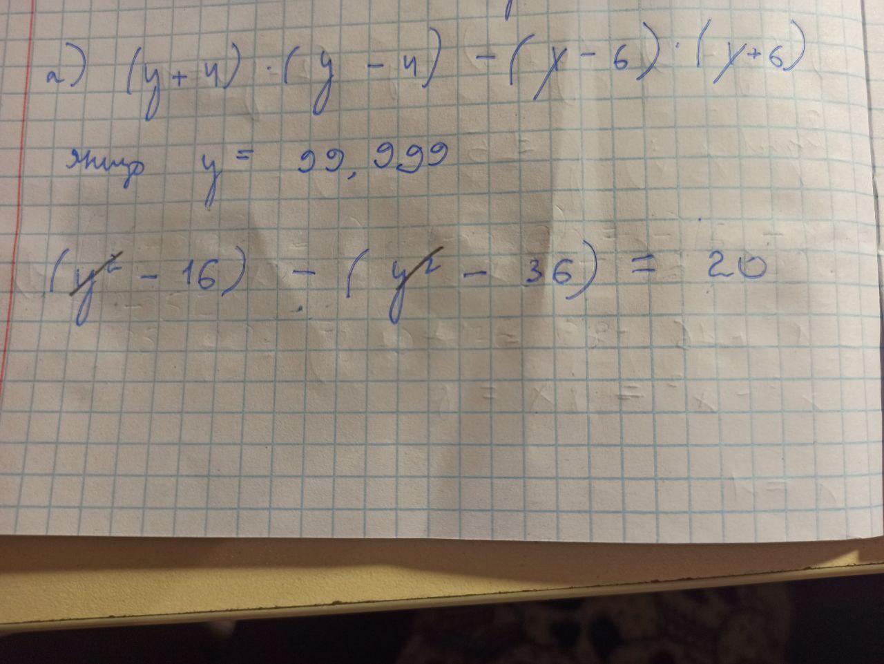 а) (y+4)(y-4)-(y-6)(y+6), якщо y=99,999