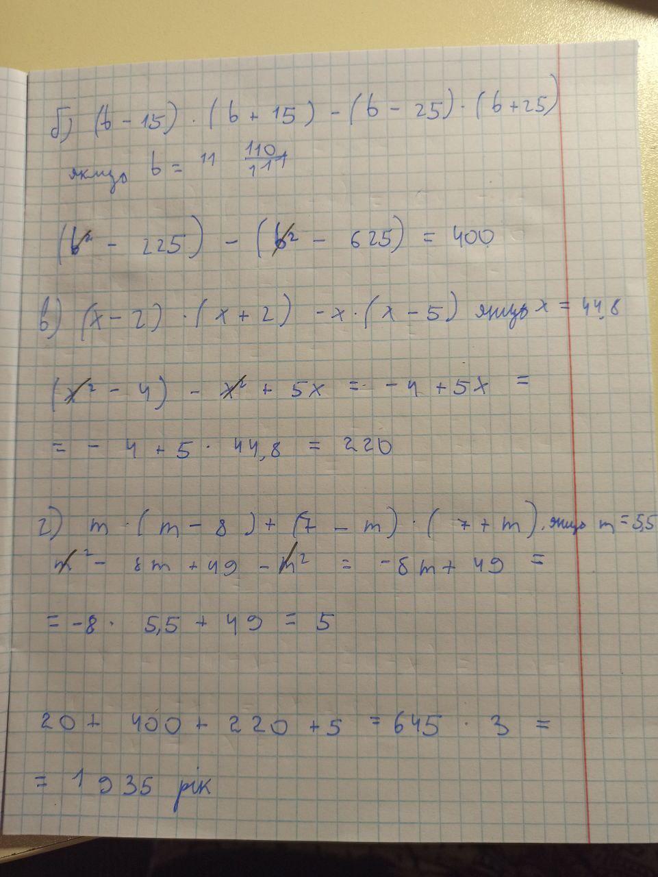 б) (b-15)(b+15)-(b-25)(b+25),якщо b =11/110_111