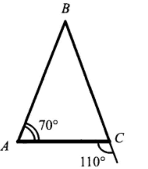 Угол В = 110° - 70° = 40°