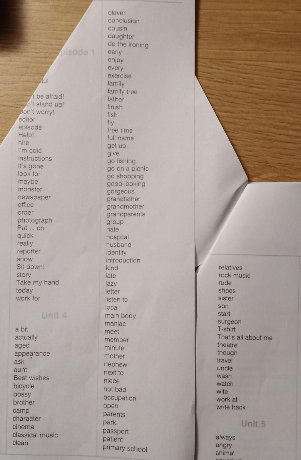 a bit actually aged appearance ask aunt Best wishes bicycle bossy brother pisode 1 camp character cinema classical music clean clever conclusion cousin daughter do the ironing early enjoy every exercise family family tree father finish fish fly free time full name get up give go fishing go on a picnic go shopping good-looking gorgeous grandfather grandmother grandparents group hate hospital husband identify introduction kind late lazy letter listen to local main body maniac meet member minute mother nephew next to niece not bad occupation open parents park passport patient primary school relatives rock music rude shoes sister son start surgeon T-shirt That's all about me theatre though travel uncle wash watch wife work at write back ТОЛЬКО 4 ЮНІТ ПОМОГИТЕ ПОЖАЛУЙСТА НУЖНО СРОЧНО ПЕРЕКЛАСТИ СЛОВА 60 балів.
