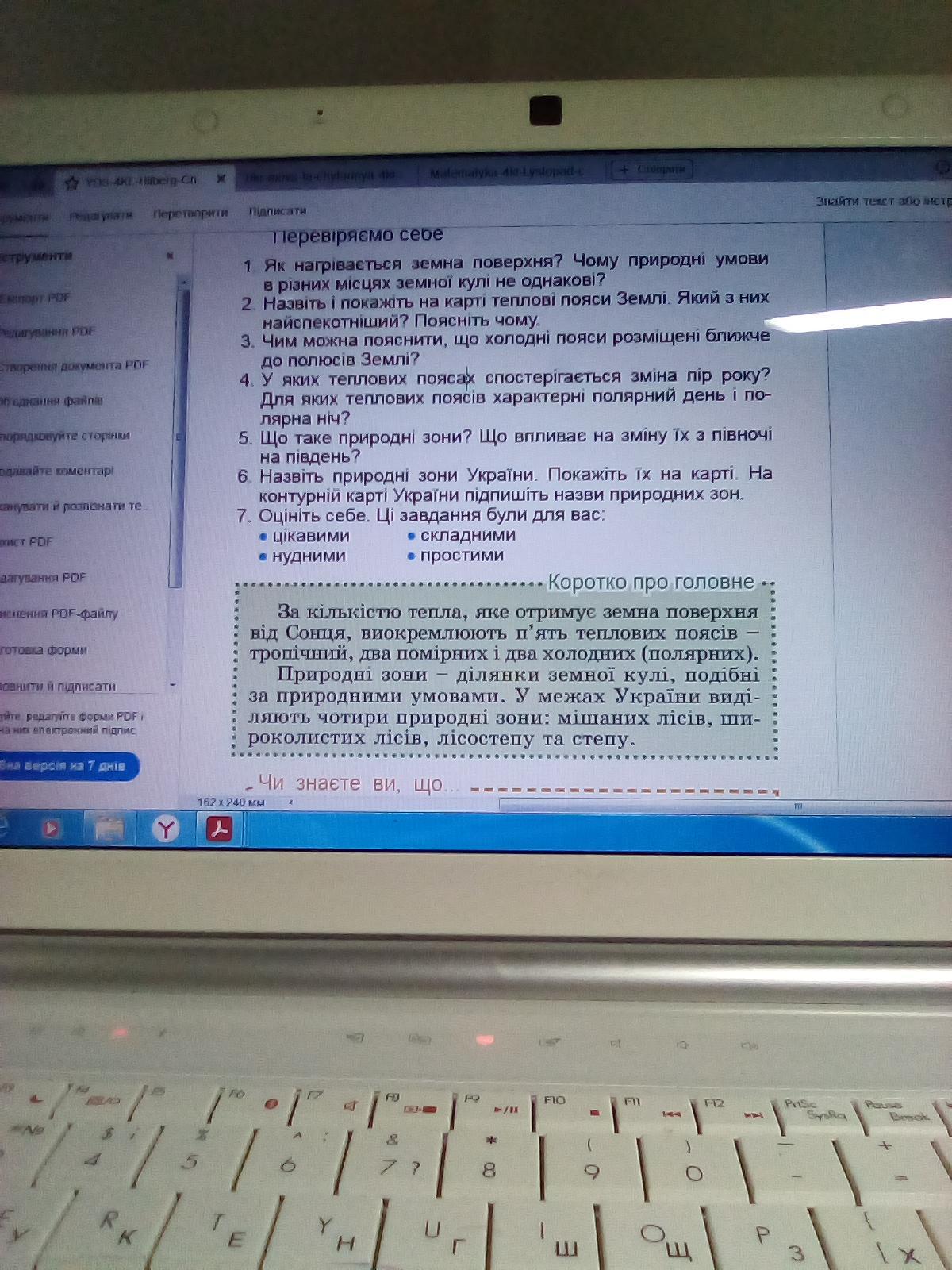 2)На Землі виділяють кліматичних поясів: екваторіальний ,два тропічні ,два помірні, арктичний та антарктичний .Також існують перехідні теплові пояси( два субекваторіальні, два субтропічні, субарктичний і субантарктий). Найспекотнішим є екваторіальний кліматичний пояс( або як сказано підручник-- Тропічний тепловий пояс).