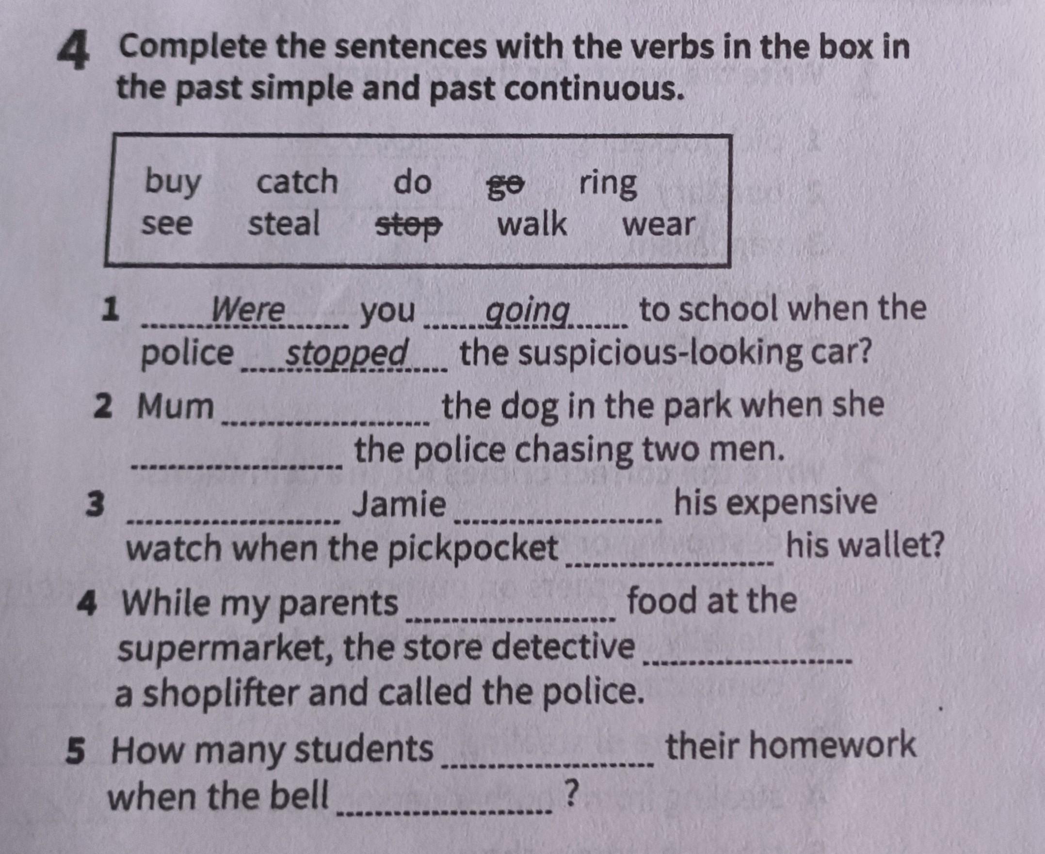 Complete the sentences with the verbs in the box in the past simple and past continuous