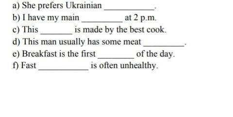 Complete the sentences with a correct word "food", "dish" or "meal".