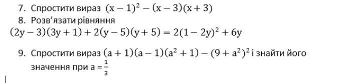 7) (х-1)²-(х-3)(х+3)=х²-2х+1-х²-9=-2х-8