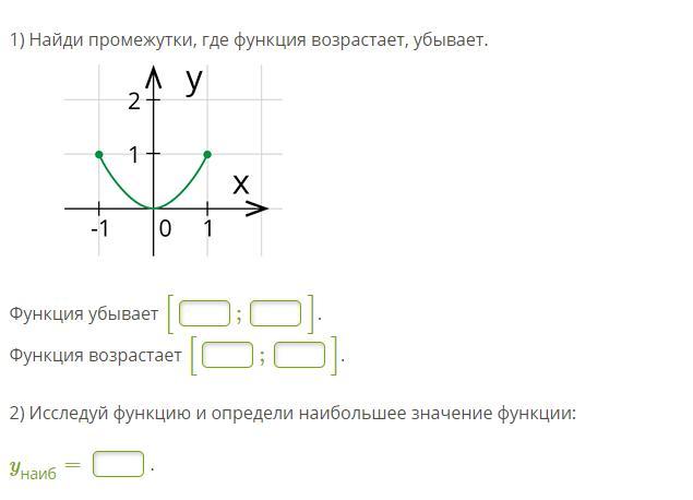 Наибольшее значения функция принимает в точках x=-1 и x = 1. Значение функции в этих точках - 1
