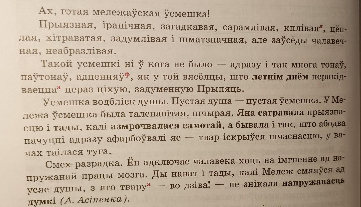 Спішыце тэкст, расстаўляючы прапушчаныя знакі прыпынку. Падкрэсліце прыметнікі-азначэнні і прыметнікі-выказнікі.Падкрэслице дзейник, выказник и азначэнне.У дужках пазначце, дапасаваным ци недапасаваным з'яуляецца азначэнне.