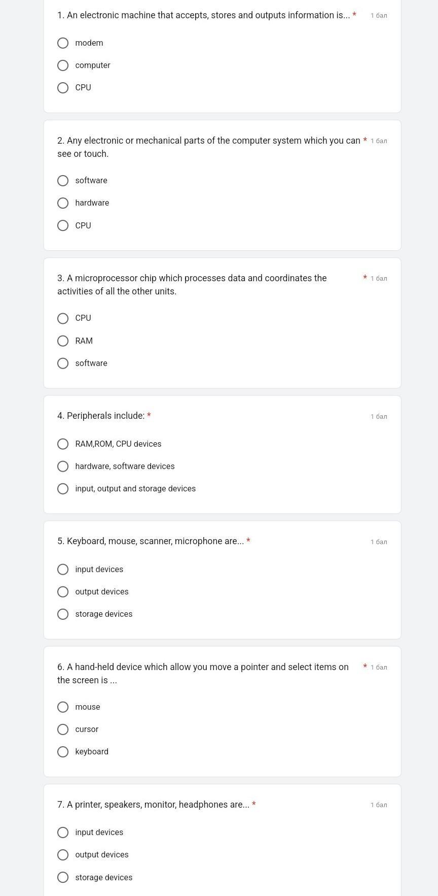 5. Keyboard, mouse, scanner, and microphone are input devices.