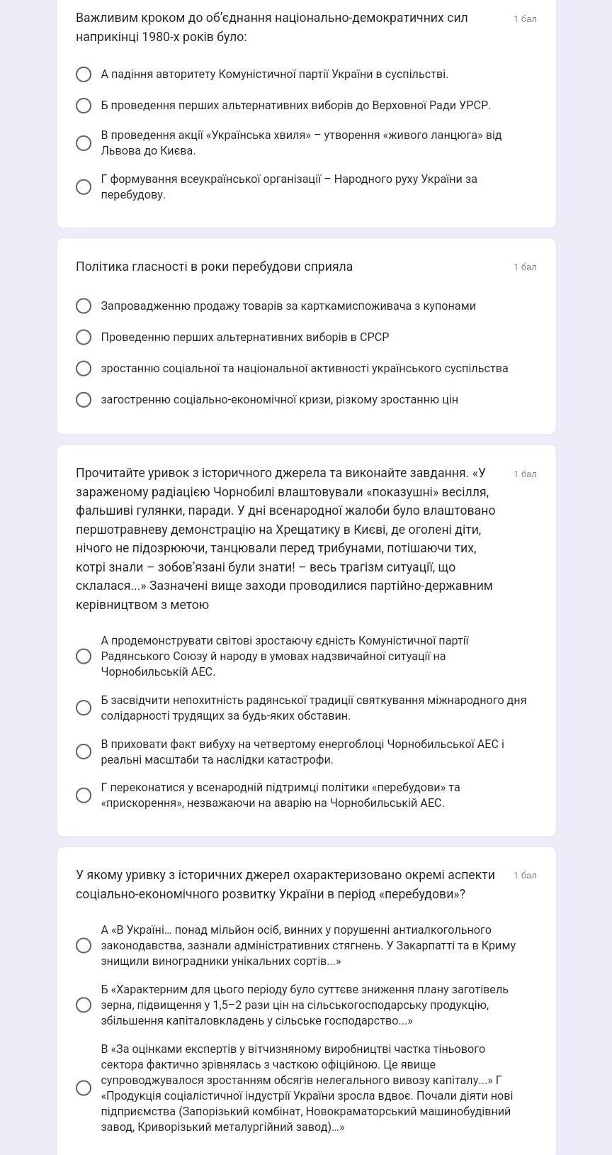 4. У якому уривку з історичних джерел охарактеризовано окремі аспекти соціально-економічного розвитку України в період «перебудови»?