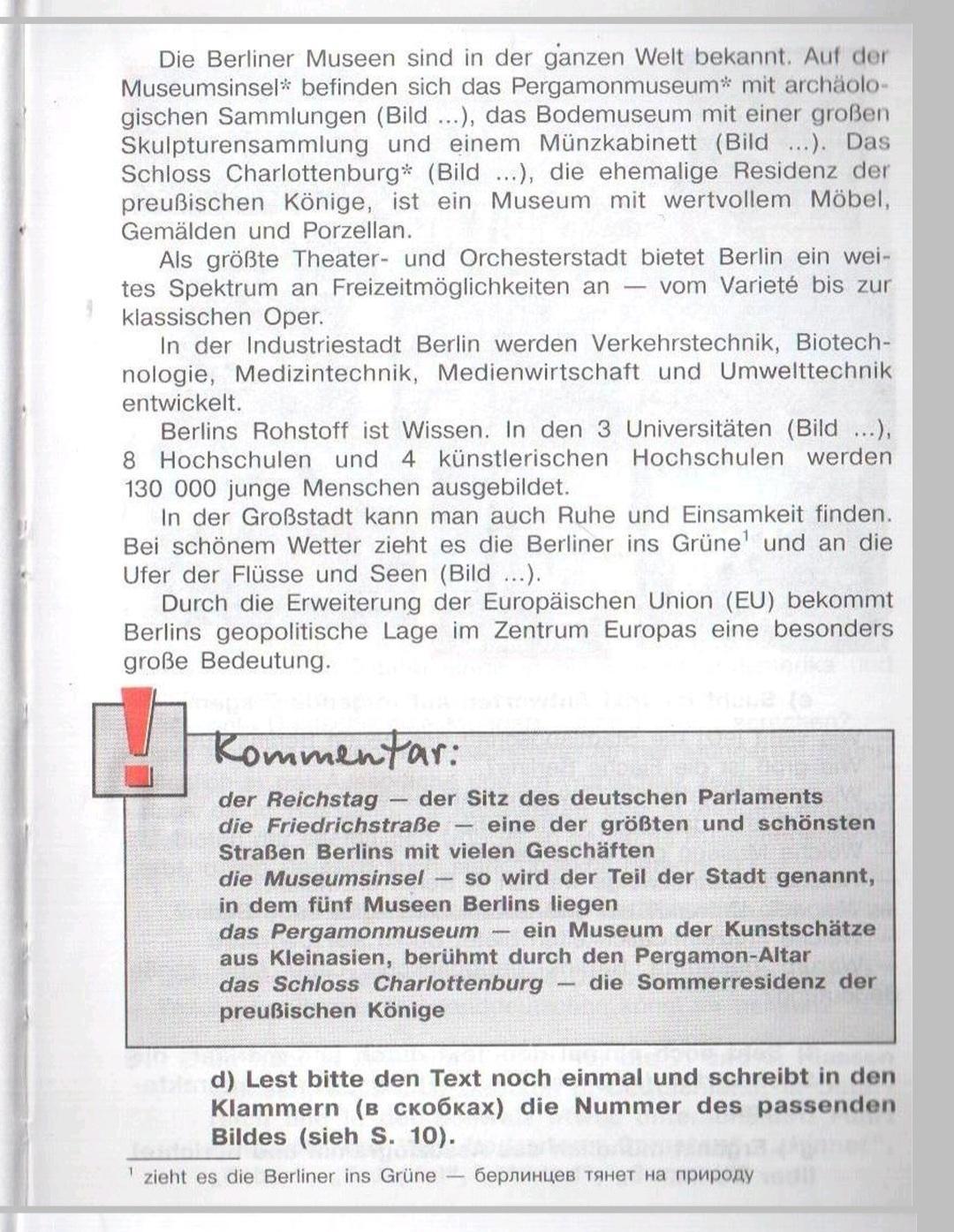 D) Lest bitte den Text noch einmal und schreibt in den Klammern (в сko6kax) die Nummer des passenden Bildes (sieh S. 10).