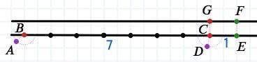 Теперь из условия стоит понять что путь BC равен 7 остановок, а проехала на 1 остановку дальше: BE = 8 остановок.