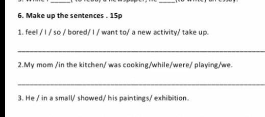 6. Make up the sentences. 15p 1. feel /1/so/bored/1/want to/ a new activity/ take up.